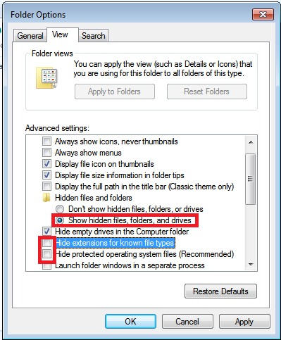 However, if the Malwarebytes runtime error is due to malware attack, uninstall it as per instruction in number 1 above malwarebytes runtime error Then, unhide your file extensions such as (ex. .txt (notepad), .docx word, .exe  for installers) and so on, just follow this post How to unhide file’s extension in step 1 or you can simply go to your “folder option” and in “view” tab follow the settings in the image below and click apply.